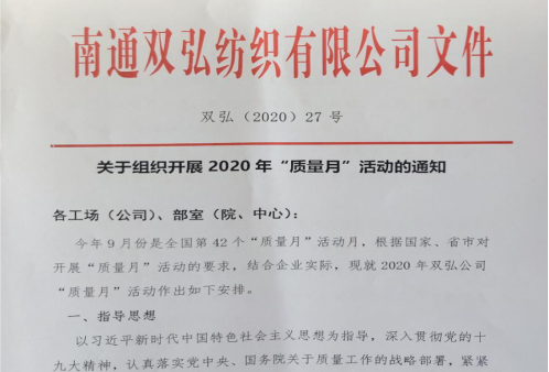 Ved lanceringsceremonien offentliggjorde selskabets partiudvalgsekretær og formand Ji Yijun firmaets dokument med dobbelt stor (2020) nr. 27 "kvalitetsmåned" aktivitet, klarede vejledningen, bestemte temaet for temaet for aktiviteten, udarbejdet aktivitetsplanen, implementeret aktivitetskrav Kvalitetsovervågning, resultatudgivelse og aktivitetsevaluering og klarede afdelinger, specifikke ansvarlige personer og færdiggørelsestid for hvert arbejde. Han påpegede, at virksomheden skulle indtage forskellige former og i vid udstrækning offentliggøres for at skabe en god atmosfære af "Uanset hvor lille kvaliteten er, er det en stor ting" og "alle er ansvarlige for kvalitet"; For fuldt ud at gennemføre kravene i aktiviteten skal alle afdelinger være nøje opmærksomme på gennemførelsen af ansvarsområder; For at tage "kvalitetsmåneden" som en mulighed skal du nøje fokusere på ånden i selskabets nr. 1-dokument, kraftigt implementere fem nøgleprojekter, forbedre den langsigtede kvalitetskontrolmekanisme, dybt og omfattende fremme kvalitetsstyring, aktivt guide alle medarbejdere, hele processen og den tildelte kvalitetsforbedring, skabe dobbelt store boutiques, fortsætte med at fremme højkvalitetsudviklingen i dobbelt stor virksomhed og fortsætter med at bidrage til udviklingen af industrien.