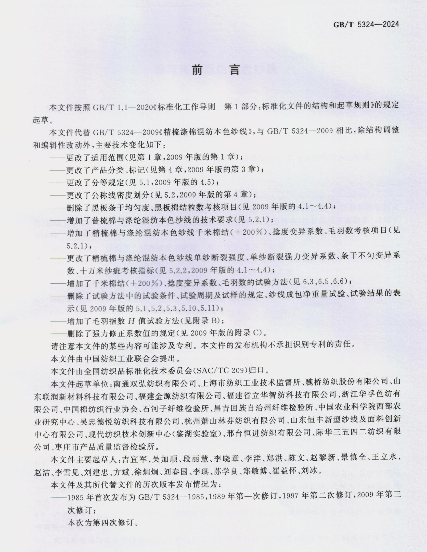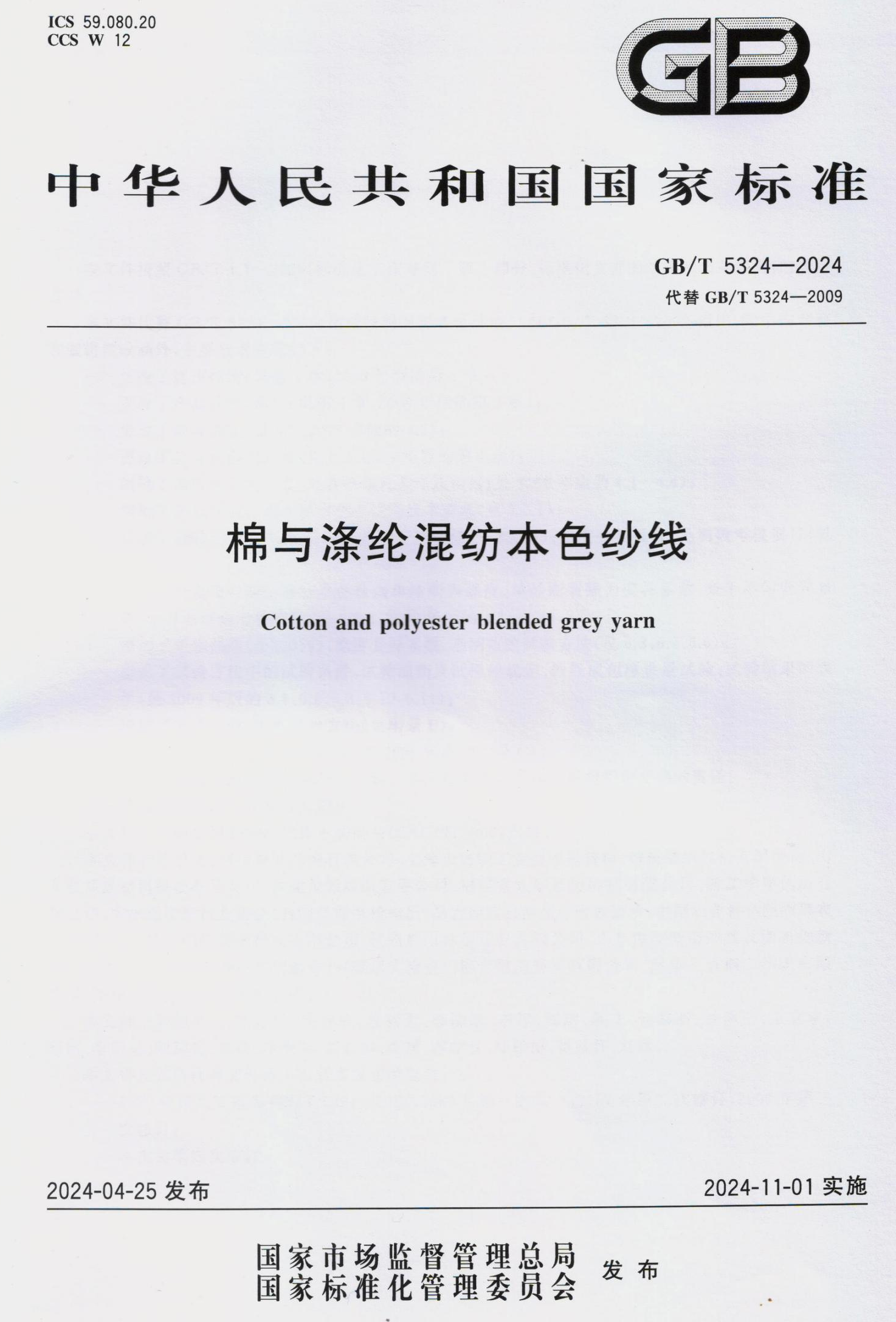 National Standard GB/T 5324-2024 "Bomuld og polyester blandet naturligt garn" Udarbejdet af Dobbelt stort selskab vil blive officielt implementeret den 1. november 2024.