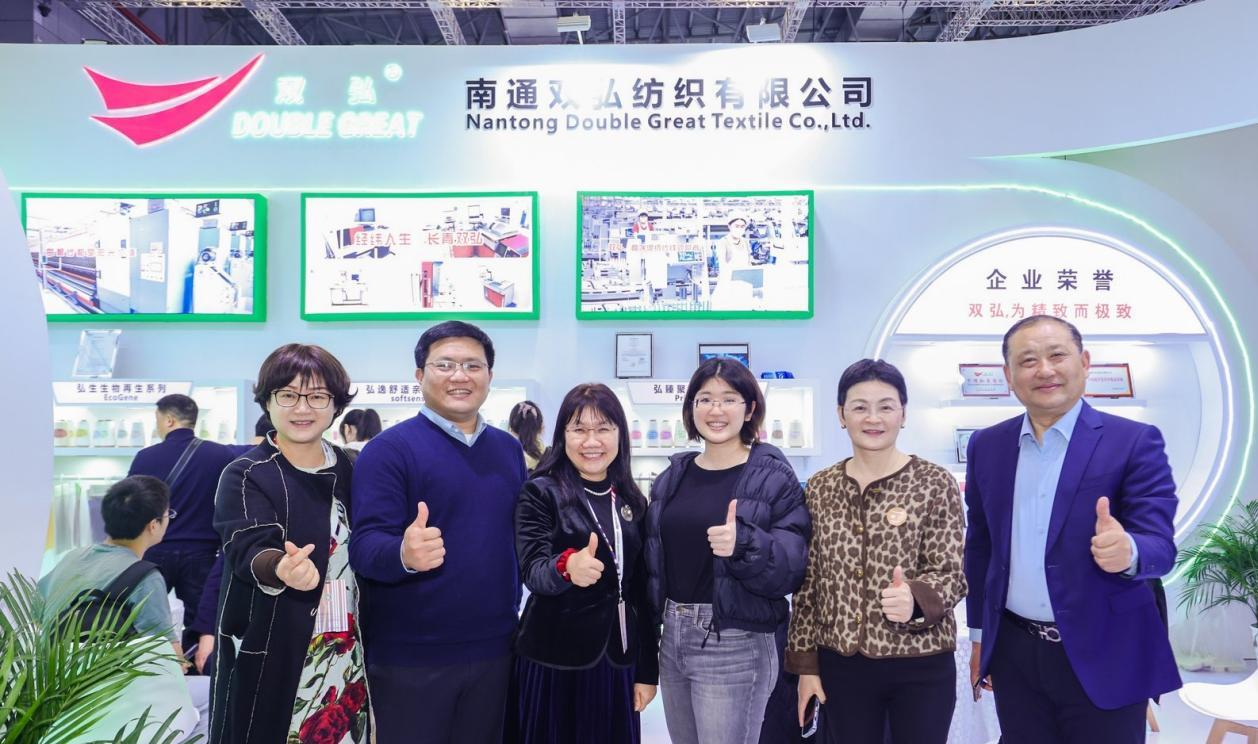 Den 11. marts bragte Nantong Double Great Textile Co., Ltd. nye produkter til at deltage i 2025 China International Textile Yarn (Spring and Summer) -udstilling, der blev afholdt på Shanghai National Convention and Exhibition Center (Booth Number: Hall 8.2 C117). Produkterne, der udstilles denne gang, er tema på grøn, teknologi og mode.