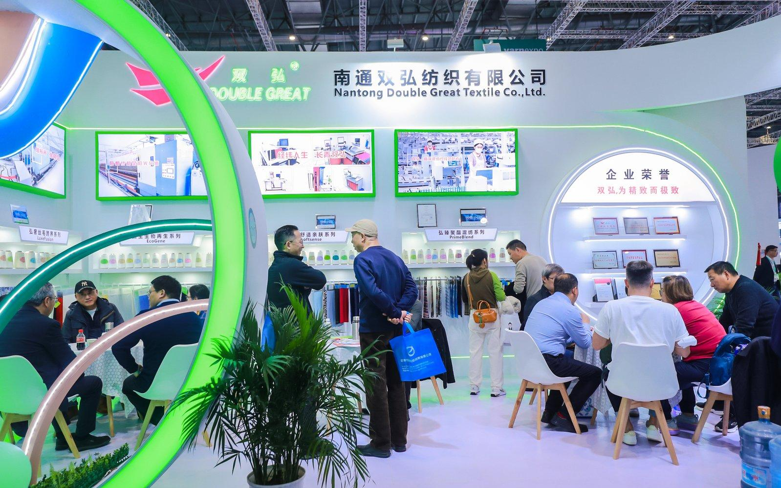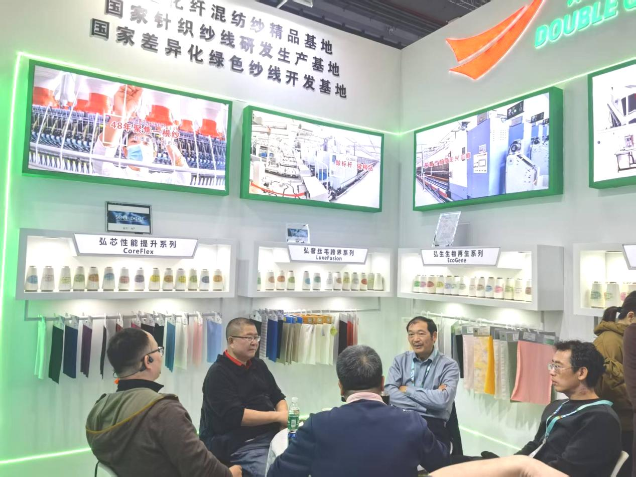 Nantong Double Great Textile Co., Ltd. bragte en række udstillinger til udstillingen, herunder differentierede cellulosefiberserie, biobaserede serier, genanvendt high-end polyester-serie, differentierede kernespund-serie, avanceret naturlige lyshong-serie og nyudviklede Wool Pure Spinning Blend-serie, Bio-baserede materialer (polylaktiske syre PLA) og andre høje-end-serier.