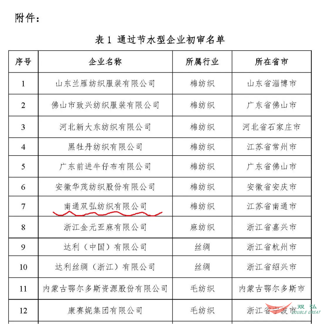 Den 25. juli kom Nyheder fra det officielle websted for China Textile Industry Federation om, at Nantong Double Great Textile Co., Ltd. blev tildelt den vandbesparende virksomhed i 2022 i tekstilindustrien. Det er den eneste bomuldsspindingsvirksomhed i Nantong, der modtager denne ære.