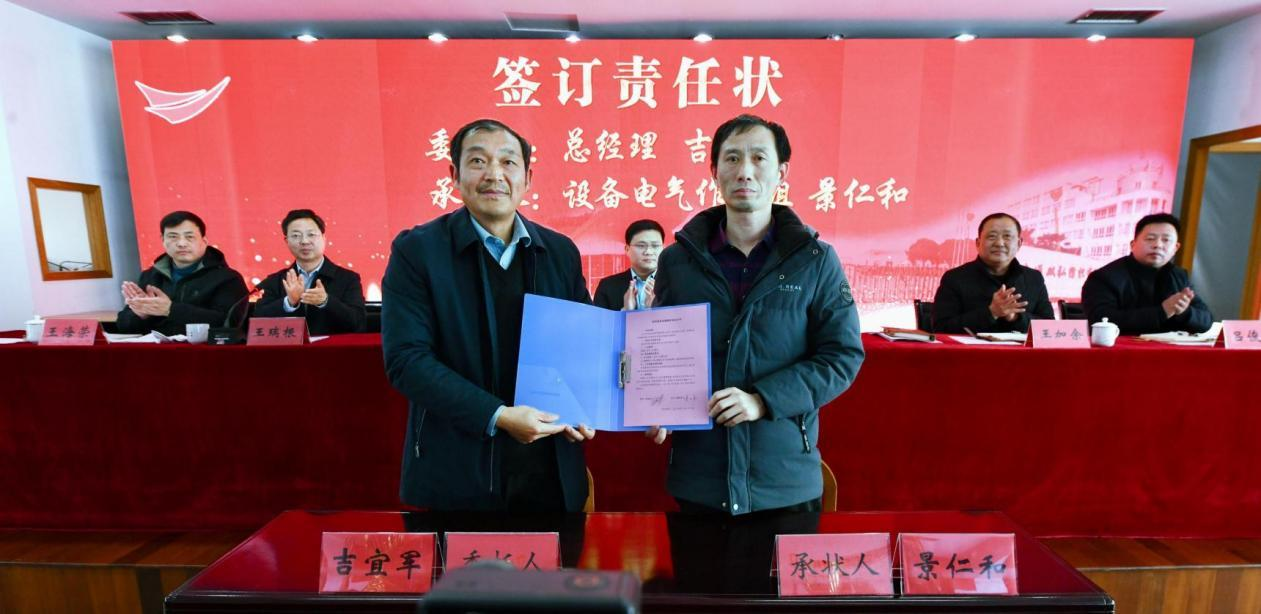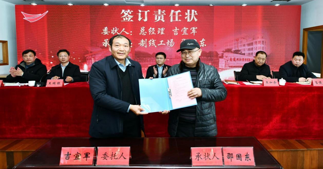 Med et mål og et sind stræber vi efter at implementere reformstrategier. Vi understreger politisk ledelse og bygger et team af medarbejdere. Vi understreger genstand for ansvar og stimulerer vitalitet. Vi understreger en fabrik med flere systemer og tilskynder til fusioner og erhvervelser. Vi understreger arbejdseffektivitet, centraliseret ledelse af virksomheden og hierarkisk ansvar fra afdelinger. Enhed er styrke, og kamp skaber fremtiden. Kamerat Ji Yijun håber, at alle dobbelt store mennesker vil være selvsikker, håbefulde, banebrydende, g og initiativrige med ånden i en slange, der kan rejse tusinder af miles, tage initiativet i vanskeligheder, klatre over forhindringer i modgang og arbejde hårdt sammen for at opbygge en langvarig dobbelt stor og skabe en bedre fremtid. Lederen af marketingafdelingen underskrev et marketingmålansvarsbrev med formand Yang Yang, og lederen af produktionsværkstedet og udstyret Electrical Maintenance Team underskrev Workshop Målsansvarsbrevet og udstyret Electrical Work Ansvar med General Manager Ji Yiju, n.